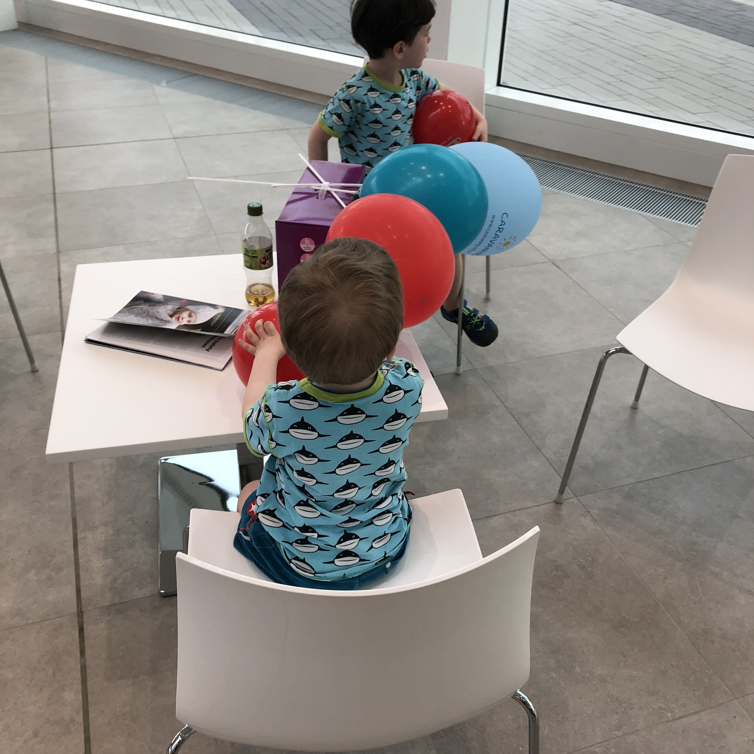 IMG_4820Generell denke ich, dass die Messe einige Zielgruppen anspricht und viele Preissegmente abdeckt. Der Eintrittspreis ist an der Tageskasse 12€ pro Person und Kinder unter 10 Jahren sind kostenlos mit dabei. Wenn ich mir dann die Rabatte bei unseren Käufen heute ansehe, ist es vermutlich eine Geschichte von Plus/Minus Null. Wer eine größere Anschaffung plant, spart mit den 10%, die fast alle Babymärkte anbieten, doch gut. Es gab überall auch spezielle Messeangebote. Entspannter ist es vermutlich alles mit einem Termin im Babyladen des Vertrauens. Wir waren etwa 2 Stunden dort und fanden es interessant, viele Stände haben wir auch nicht angesehen, es waren auch Kiddy, Harman, Joie und Emmaljunga vertreten. Viele kamen mit großen Tüten und Werbegeschenken, wir haben die Bälle und eben einiges an Gummibärchen bekommen und Luftballons. Außerdem gabs bei Babauba Malbücher für die Kinder, auch wunderschöner Kleidung, nur leider keine Kurzarmshirts, die wir noch suchen. Die bunte Mode gefiel den Jungs gut.