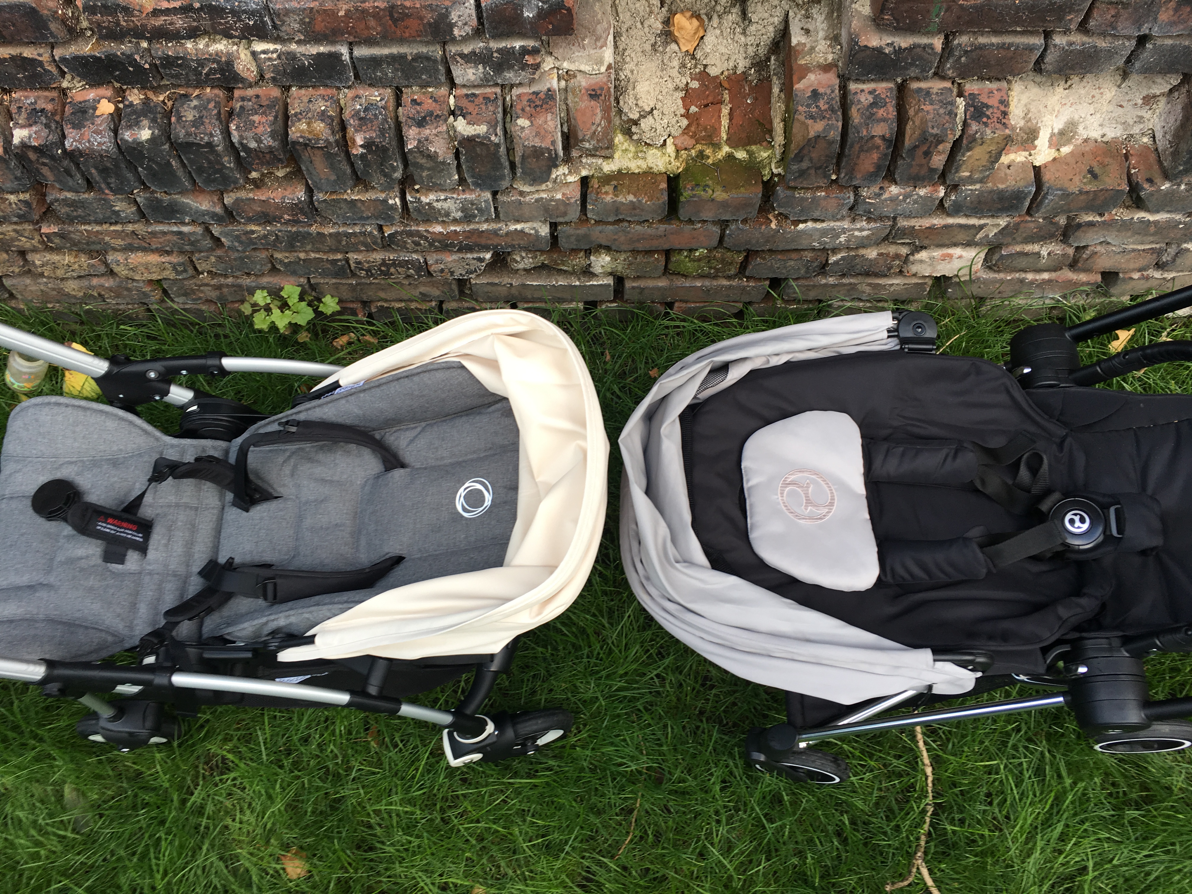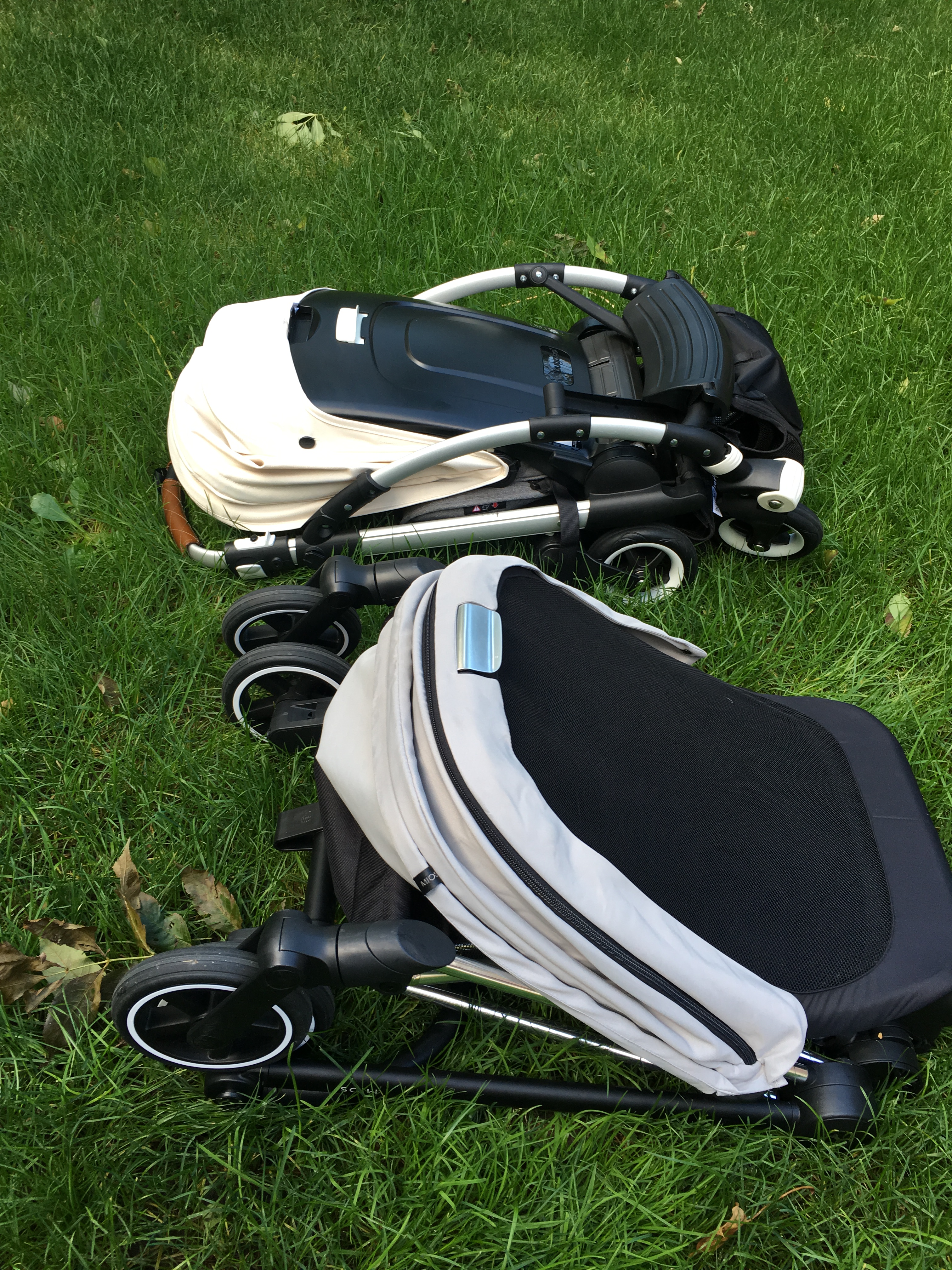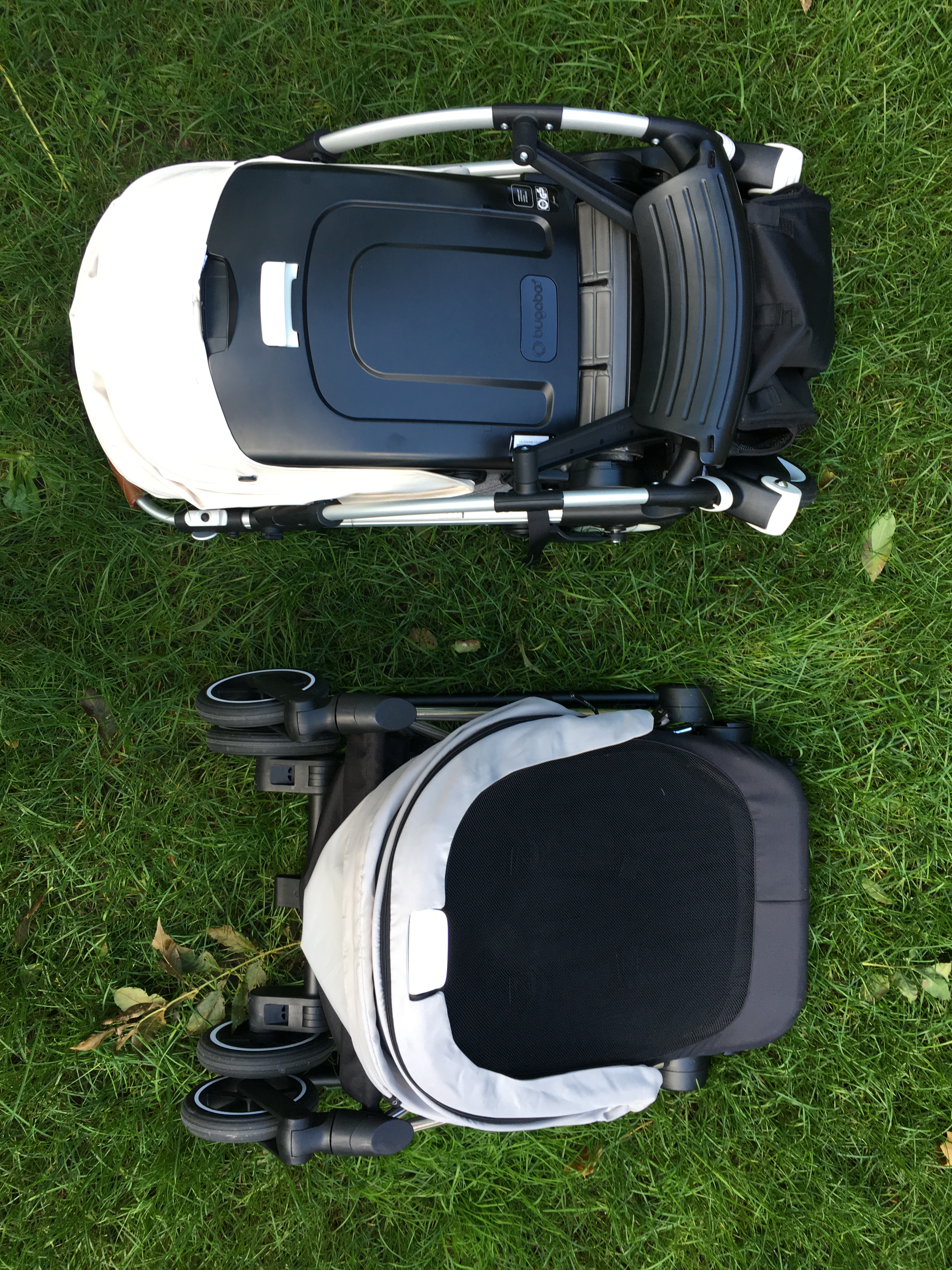 English summary for a few days we had the chance to compare the Bugaboo Bee5 directly with the Cybex Mios buggy. Please notice that the Bee5 has a Bee+ sun canopy in this pictures as my Bee5 canopy was delivered late. The two buggies have loads in common, both offer rather big seats that are suitable for small and for tall children, with both buggies you can easily change the seating position between world-facing and parent-facing. The Cybex Mios offers that option with the child still in the seat (please be careful though) while for the Bugaboo Bee5 you have to take the child out and fold the seat so it’s not a great option to change the position frequently during one outing. Both canopies are big and protect the child from sun or during a nap both also didn’t leak during short wet spells. The fabrics of both buggies are high quality although personally I prefer the Bugaboo fabrics, the canopy of the Cybex Mios looks creased easily. The comparison between the fold has an obvious winner: the fold of the Cybex Mios is tiny and it has a grip for carrying it around! The fold of the Bugaboo Bee5 is okay, too, but not as tiny as the Cybex Mios. Both should fit into most car boots. What didn’t impress me much about the Cybex Mios was the basket which it tiny. Really tiny. While in the basket of the Bugaboo Bee5 I can fit an average grocery shopping during the week. What I prefer about the Cybex Mios is the footrest though, it makes a much better sleeping position. Both buggies offer flat sleeping positions, are approximately the same width (50 centimetres) and same weight (ca. 9kg), have leatherette (read: fake leather) handlebars and have suspension on each wheel and a foot brake. The Cybex Mios has a bumper bar though which the Bugaboo Bee5 hasn’t. Although the Cybex Mios has a smaller fold I find the Bugaboo Bee5 a bit easier to fold down. Bugaboo offers special editions frequently so if you like swapping canopies and styles, it is easier with the Bee5 as there are more options, you can buy color packs for the Cybex Mios though, too. In my opinion the Bugaboo Bee5 is a bit easier to push, literally with one finger (on even surfaces) and I prefer the new Bugaboo harness. So, if the fold and the sleeping position and a bumper bar are most important to you, get the Cybex Mios. If you prefer to often change canopies and need a big basket, get the Bugaboo Bee5. Both are tested up to 17kg and should fit until about 4-5 year old. I really liked both and they are great quality, we kept the Bugaboo Bee5 though because of the Cybex Mios‘ tiny basket. Maybe Cybex could improve that with the next versions.