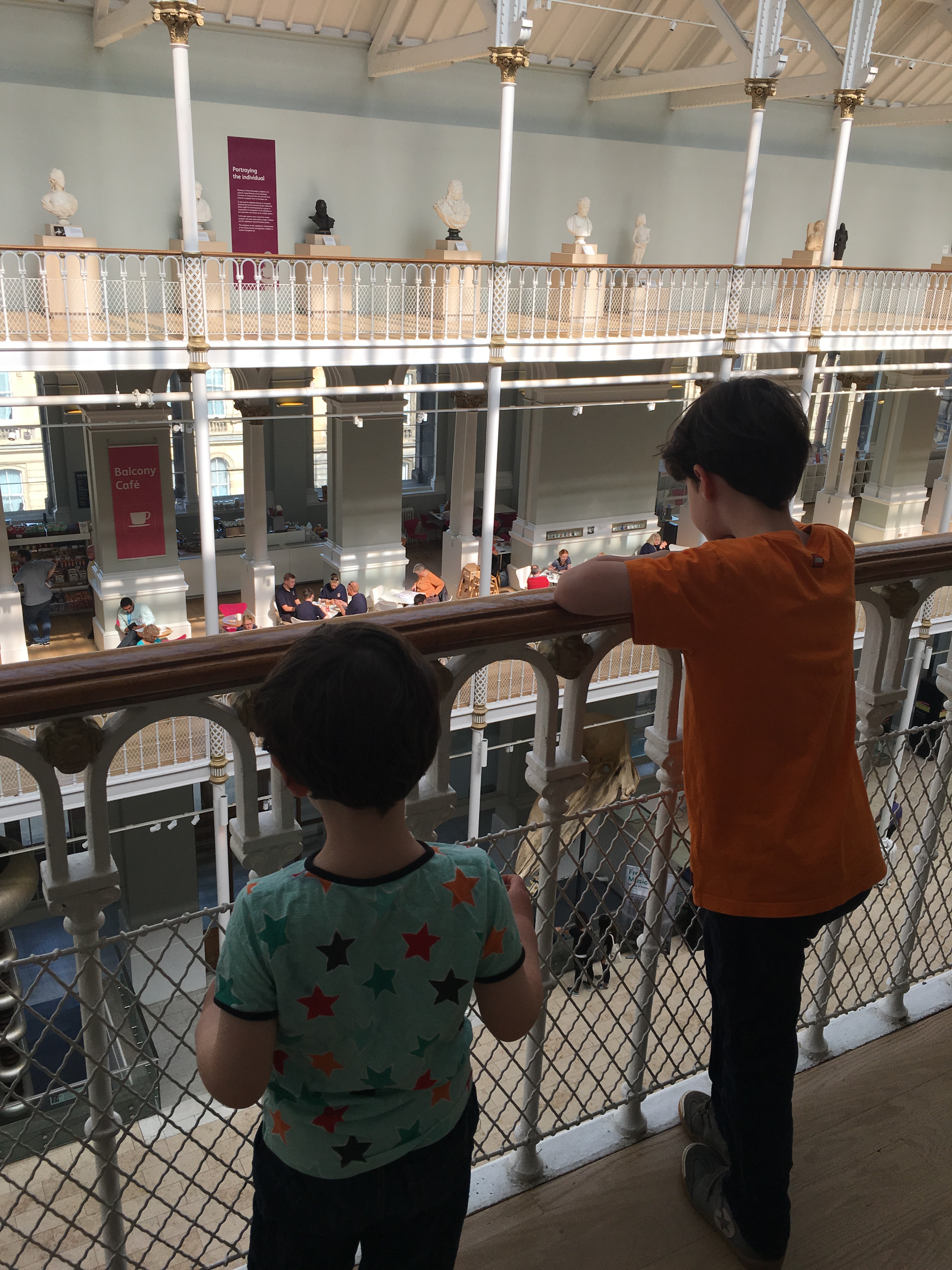 Wirklich toll und unser absolutes Highlight in Edinburgh war das Scottish National Museum. Die Kinder und ich haben über 2 Stunden dort verbracht, es ist eins der tollsten Museen, in dem ich je mit den Kindern war. Das Gebäude an sich ist schon wirklich toll, außerdem gibt es so einige Fahrstühle und es ist riesengroß. Gleichzeitig war unten in der Halle live Musik, tolle Stimmung. Ich kann nicht alles aufzählen, was es gibt, es war so viel und so interaktiv. Es gibt Tierfiguren, dabei gab es die Möglichkeit, auszutesten, wie manche Tiere sehen, es gab eine Waage, wo angezeigt wurde, welches Tier das gleiche wiegt, wie man selbst. auf einem riesigen Touchscreentisch konnte man sich den menschlichen Körper als CT und als Röntgenbild ansehen, zoomen und erklären lassen, man konnte seine Reaktion testen, Zahnräder in eine Reihe bringen, einen Magnetzug fahren lassen, eine kleine Wasserstoffrakete starten, es wurde das Prinzip von Seilzügen erklärt, indem man sich selbst hochziehen durfte, eben mit einer, zwei oder drei Rädern, man hätte ab 1,35m Rennauto „fahren“ (Leinwand) können, Steine ansehen, verschiedene Kulturen, sich als Ritter verkleiden, Wasserkraft erleben und ausprobieren, wir haben nicht mal alles geschafft. Noch besser wäre es für die Kinder gewesen, wenn sie Englisch sprächen, aber auch so war es total spannend und sie hatten riesigen Spaß. Außerdem ist der Eintritt frei. Natürlich haben wir etwas in die Spendenbox geworfen.