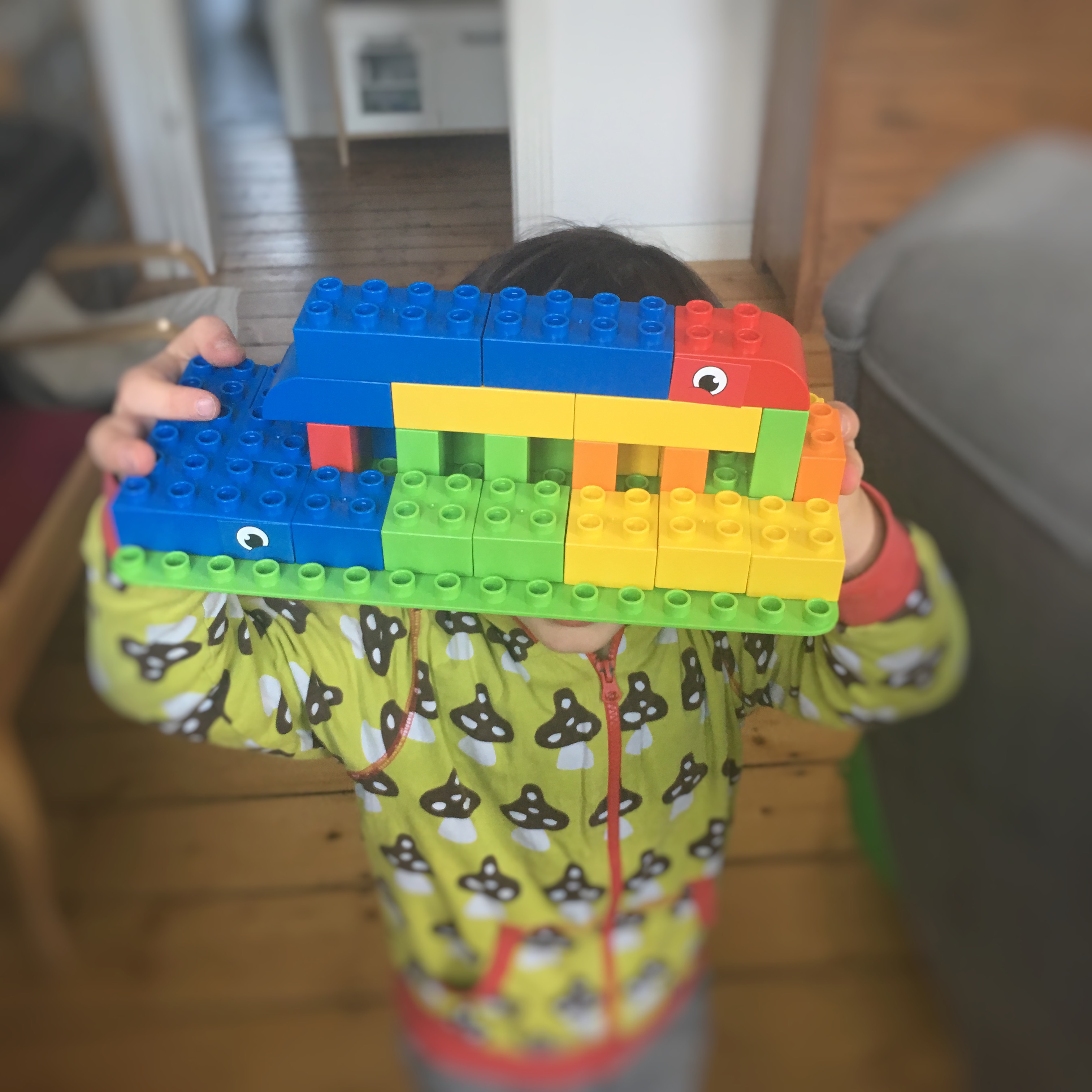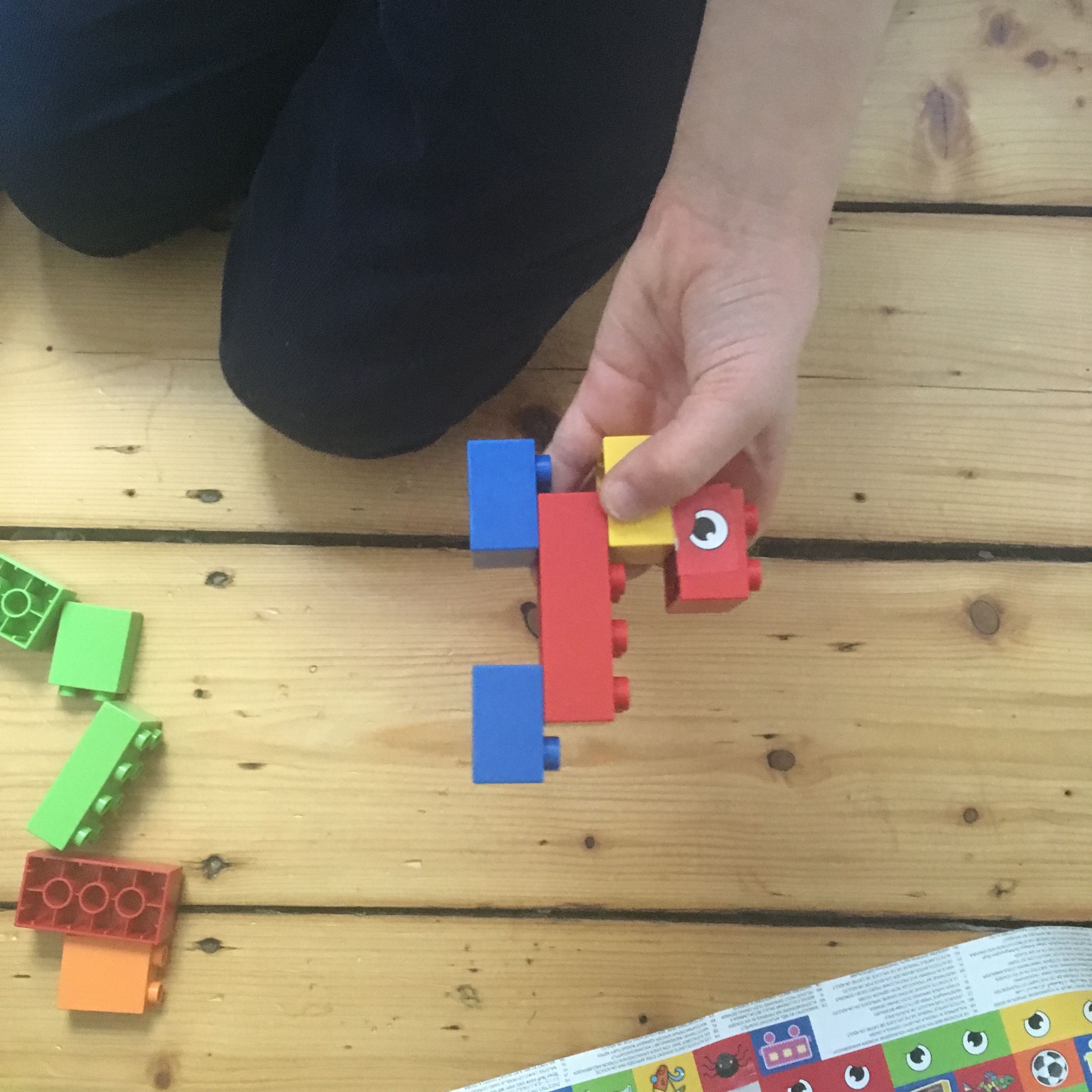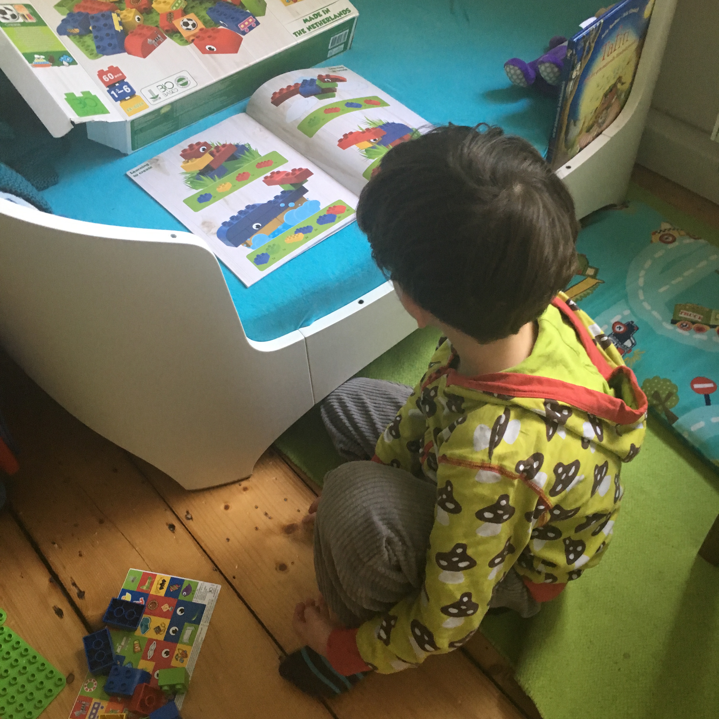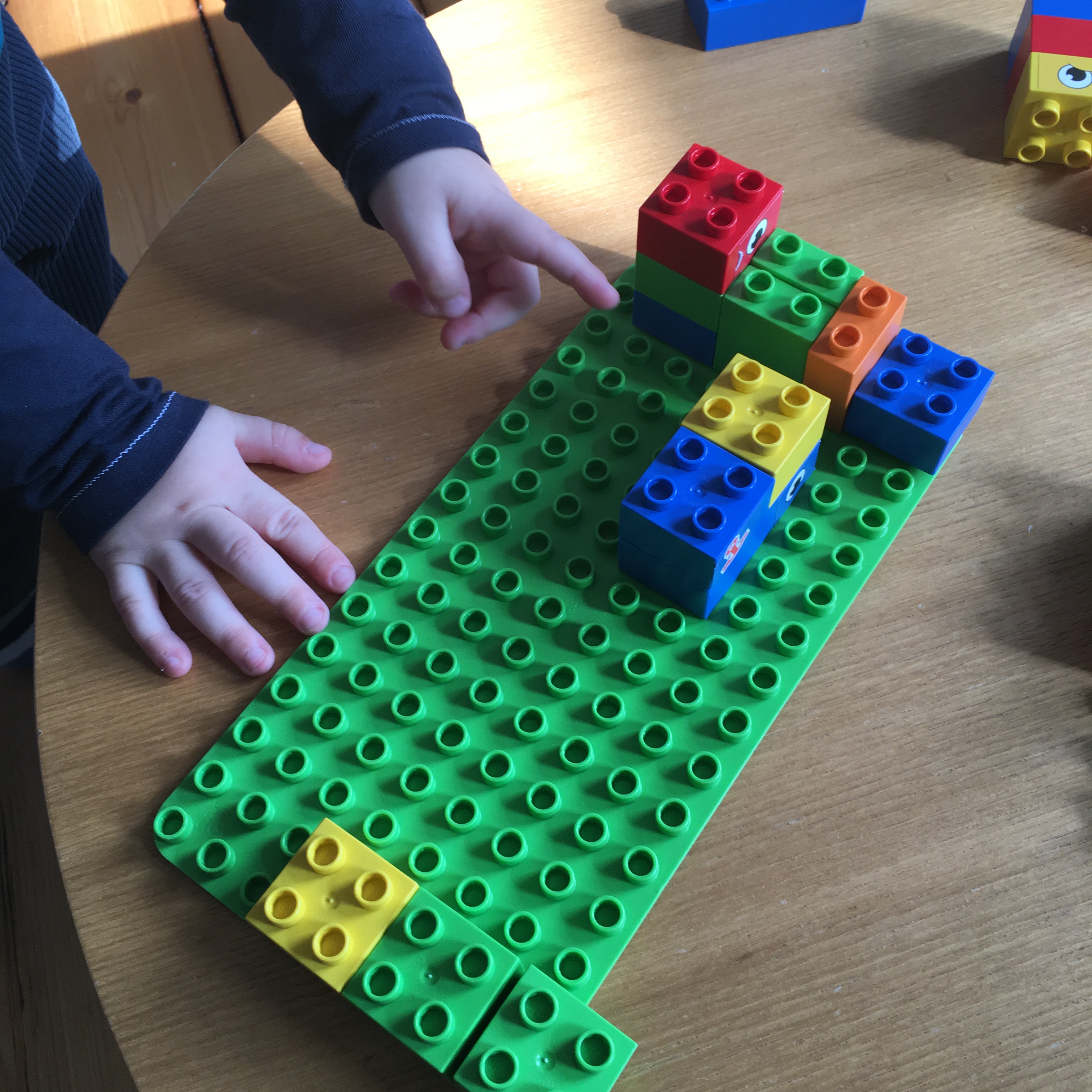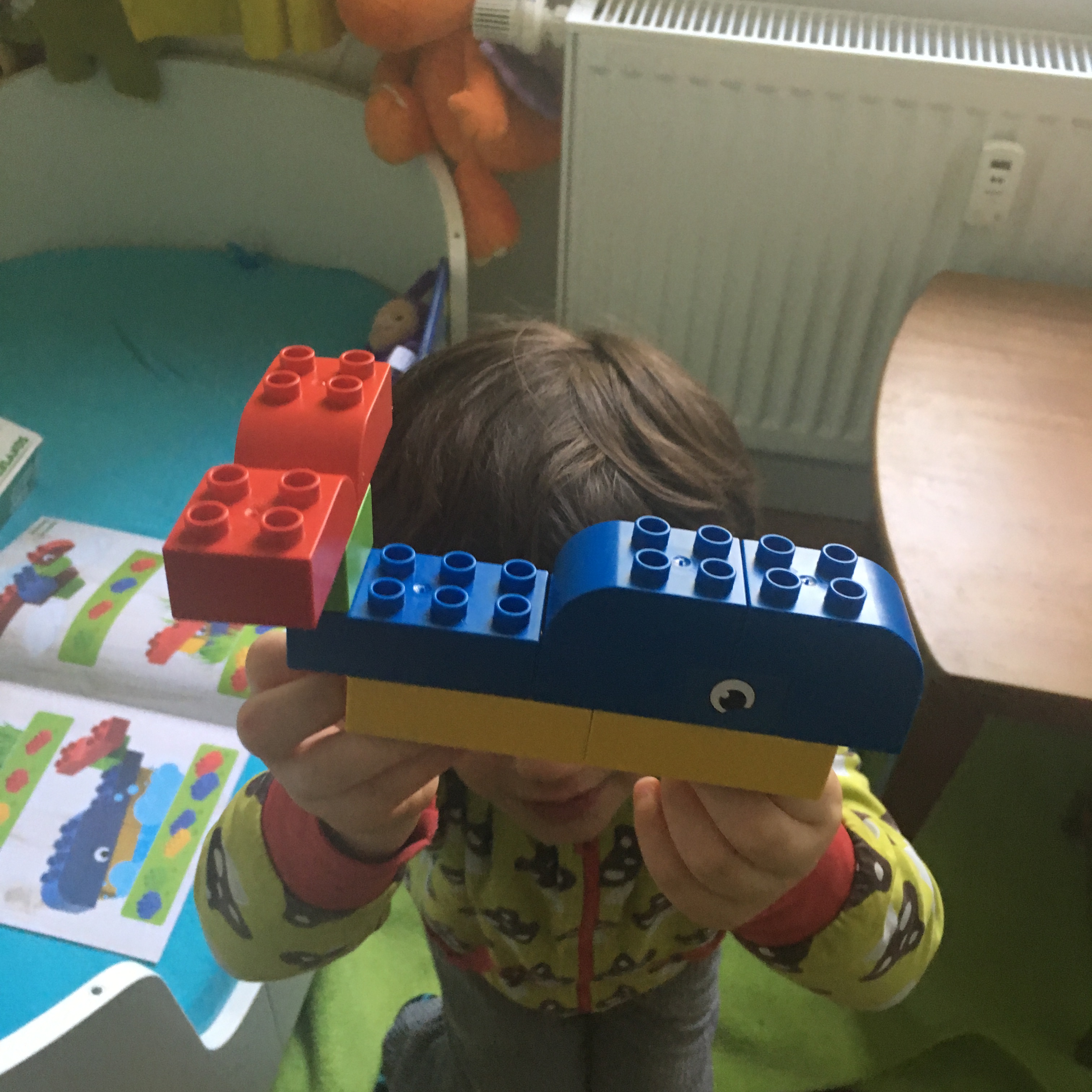 My kids couldn’t care less about it being environmental friendly (well, the eldest at 8 years does) and it being safe for kids. For them the product itself counts. My youngest helped himself to a box and was allowed to keep it. At home he grabbed it and unpacked immediately. It absolutely matches the better known (well, Biobuddi is brand new) Lego Duplo building blocks (photo of my son holding two green blocks – one Duplo, one Biobuddi above) the fit. My son mentioned that he prefers the feeling and surface of the Biobuddi building blocks, in his words „they just feel better“, we guess it’s because they have a better grip. So if you own another brands building blocks you can just get Biobuddi additionally. So far there are only blocks available and no cars or figurines, so we mix and match. On our recent holiday to Ireland my youngest brought the Biobuddi building blocks and his Duplo cars. There are different sized boxes available starting with 40 blocks, we got the box with 60 blocks. The blocks themselves are great quality the stickers aren’t so adhesive though (as they are also eco-friendly), we don’t mind, we use them without the stickers. Children older than my 2-year-old probably won’t try and remove any sticker you put on them anyway.