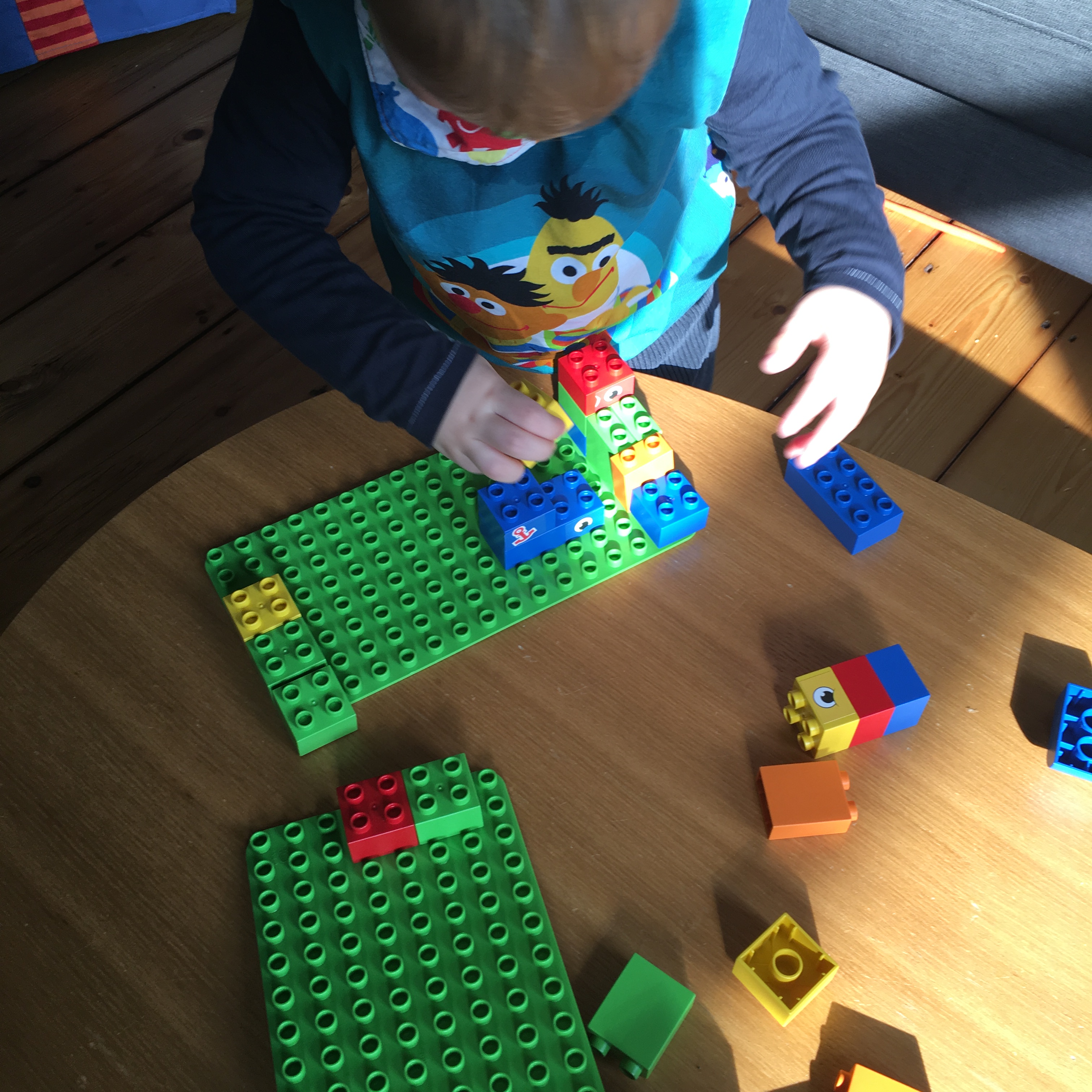 Als Starterset haben wir das Set mit 60 Bausteinen in bunten Farben. Es gibt auch eins mit 60 Teilen mit tollen lila und pinken Steinen dabei, wie ich im Prospekt entdeckt habe. Das größte Set hat 100 Teile. Bisher gibt es „nur“ Bausteine, also keine Männchen, Flugzeuge oder Fahrzeuge. Daher finde ich es so gut, dass es mit Duplo kompatibel ist, man kann also ökobewusst Steine kaufen (Biobuddi) und dann mit Fahrzeugen etc. ergänzen. Mir ist nachhaltige Produktion wichtig und ich kaufe gern von kleinen Firmen, die ihren Beitrag zur Umwelt leisten, die Kinder gehen einfach nach dem Produkt.