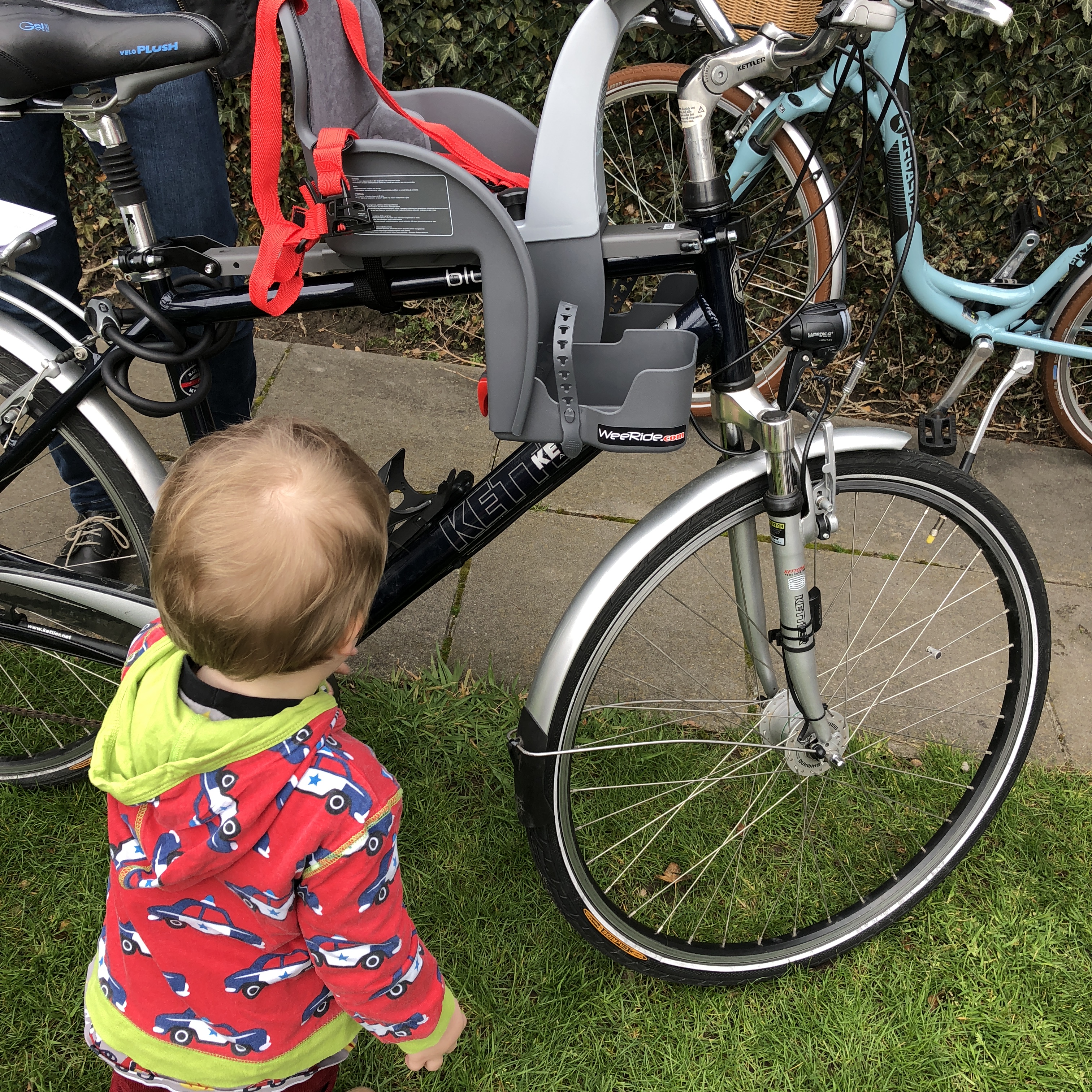 Manche Eltern bevorzugen Fahrradanhänger, ich denke, ein Anhänger und ein Sitz schließen sich nicht gegenseitig aus, aber grundsätzlich bevorzugen wir den Fahrradsitz, da er für uns mobiler ist, wir können keinen Fahrradanhänger mit in den Urlaub nehmen. Der Weeride Fahrradsitz dagegen nimmt im Kofferraum keinen Platz weg oder wird auf dem Rad transportiert.