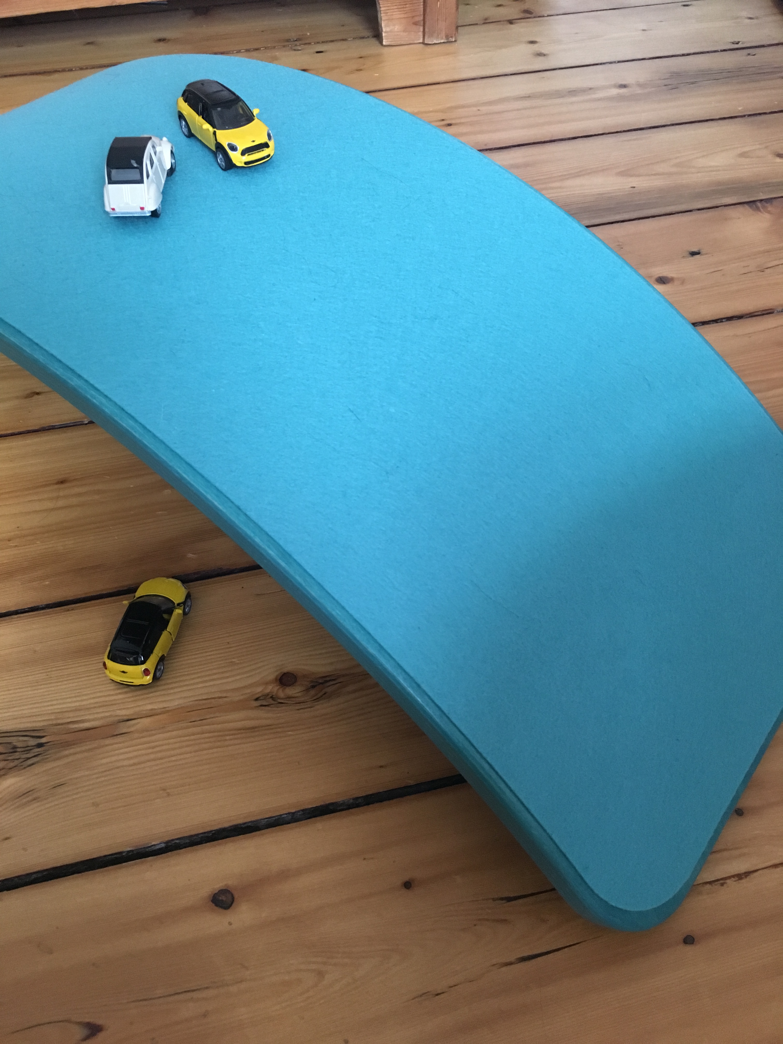 Hat es Nachteile? Auf den ersten Blick ist der Preis heftig, ab 89€ unbehandelt oder in unserer Version lackiert und mit Öko Wollfilz 155€, was schon kein geringer Preis ist. Aus meiner Sicht ist es das Wobbel wert, aber es ist eben schon die Frage, ob man so viel in ein Bewegungsspielzeug investieren kann oder will. Außerdem benötigt es schon Platz, da die Kinder sich damit eher wilder bewegen, ins Zimmer des Jüngsten würde es nicht passen, bei den beiden Großen ist mit 15 bzw 18m2 genug Platz. Dazu muss man mit Lego etc. aufpassen, dass es sich nicht darunter befindet. Auch gabs hier schon leicht geklemmte Finger, wenn sich zwei Kinder ums Wobbel streiten. Das Wobbel eher kein mobiles Spielzeug, das man einfach mal so mit zu Freunden nehmen kann. Diese „Nachteile“ merken wir aber kaum und finden es eins der genialsten Teile für Kinder.