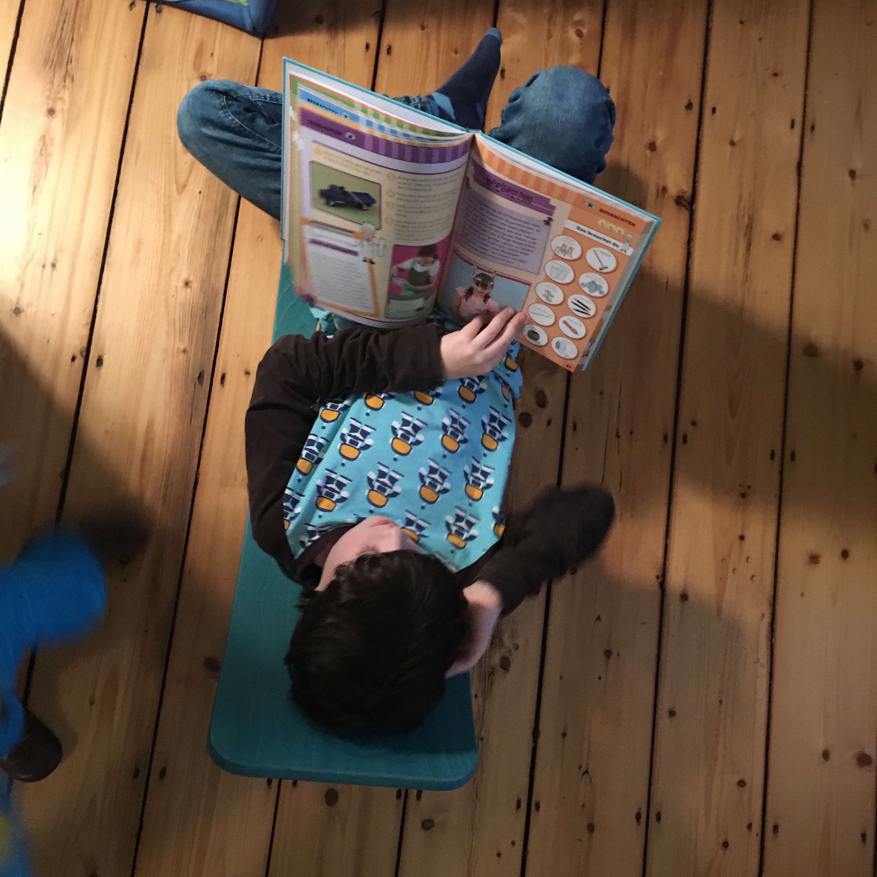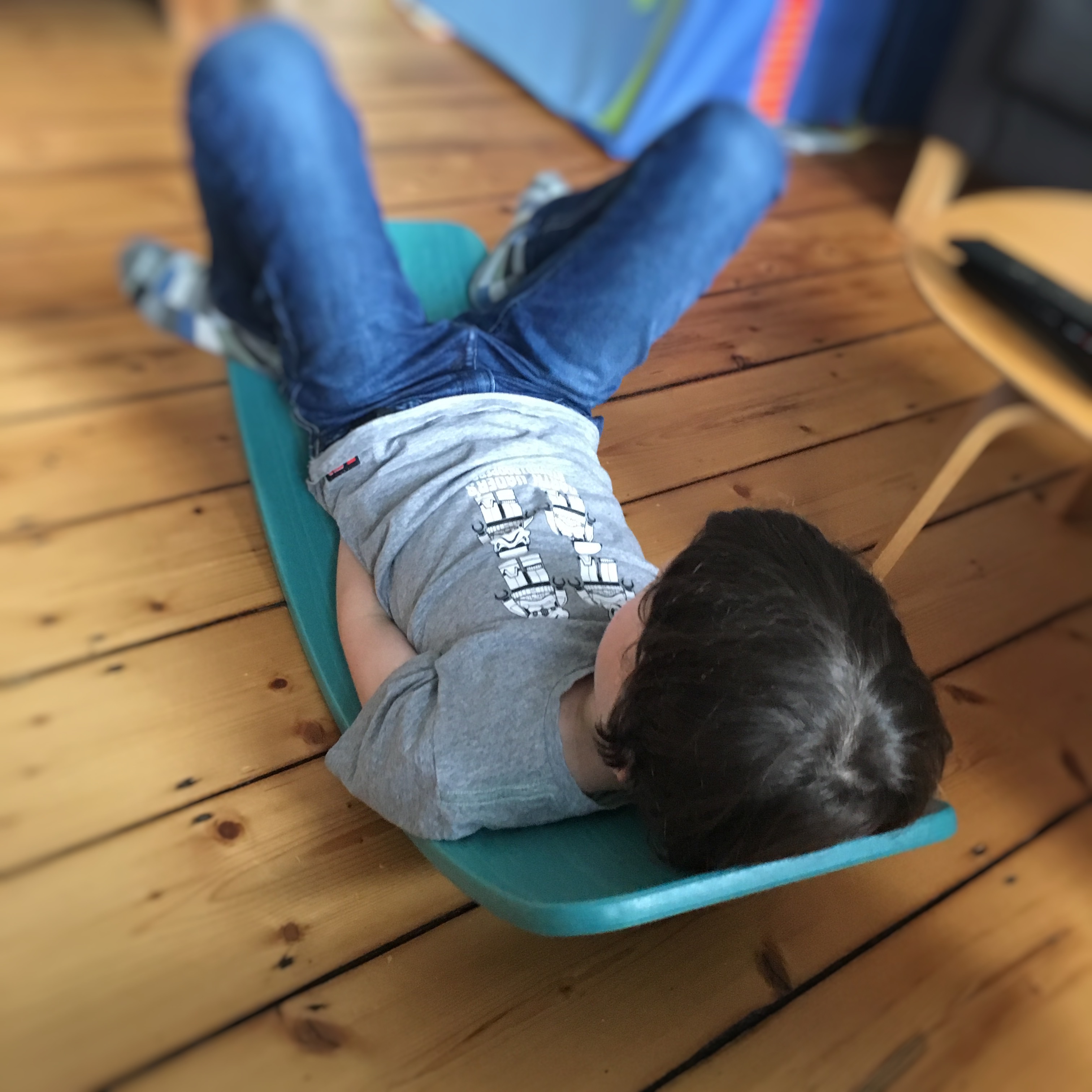 Etwas verankert in anthroposophischem Spielzeug hat das Wobbel eine runde Form und keine Ecken und es lädt dazu ein, kreativ zu Spielen, es kann sein, was man möchte. Eine Höhle für die Kuscheltiere, eine Garage für Spielzeugautos, eine Rampe oder eine Brücke beim Eisenbahn spielen. Unser Großer „surft“ darauf und liegt liebend gern drin und schaut fern oder liest ein Buch, während er sich entspannt wippt. Mit 1,37m ist er allerdings am Größenlimit für das normale kleine Wobbel und wünscht sich zu Weihnachten ein Wobbel XL. Ich muss sagen, ich kann auch auf dem XL besser wobbeln. Überhaupt gehe ich auch selten am Wobbel (es steht im Wohnzimmer) vorbei, ohne ein bißchen zu Wobbeln.